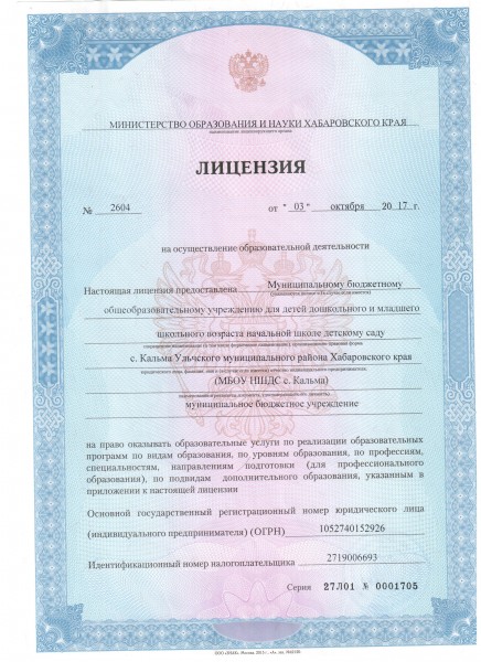 | Полное наименование образовательной организации* | Муниципальное бюджетное общеобразовательное учреждение для детей дошкольного и младшего школьного возраста "Начальная школа детский сад" с.Кальма Ульчского муниципального района Хабаровского края |