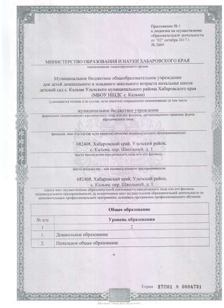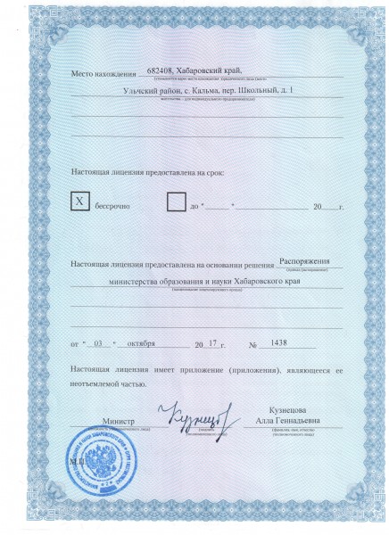 | Адрес местонахождения образовательной организации* | 682408 Хабаровский край ,Ульчский район,с.Кальма,пер.Школьный,д.1 |